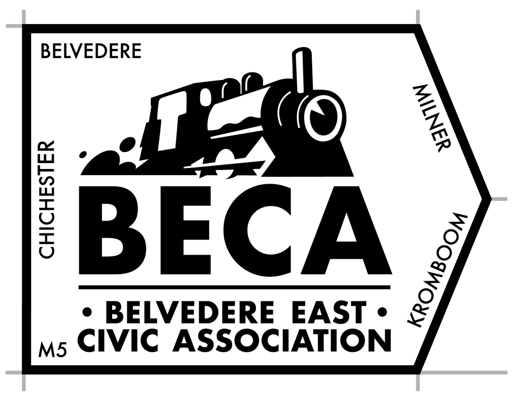 BECA (Belvedere East Civic Association) was established to represent the interests of the ratepayers and residents of the BECA neighbourhood, an area predominantly encompassing Lower Claremont – a suburb to the east of Belvedere Road. BECA’s perimeter comprises Belvedere Road (to the west), the M5 (to the east), Chichester Road to Garfield Road ; Garfield Road to Imam Haron Road ; Imam Haron Road to the M5 (to the south), and Milner & Kromboom Roads (to the north).